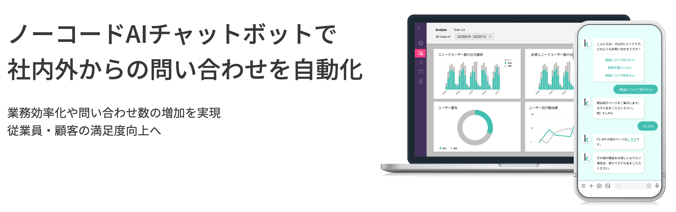 私たちが提供するKUZEN(クウゼン)は、高性能AIチャットボットをノーコードで構築できるSaaSプラットフォームです。