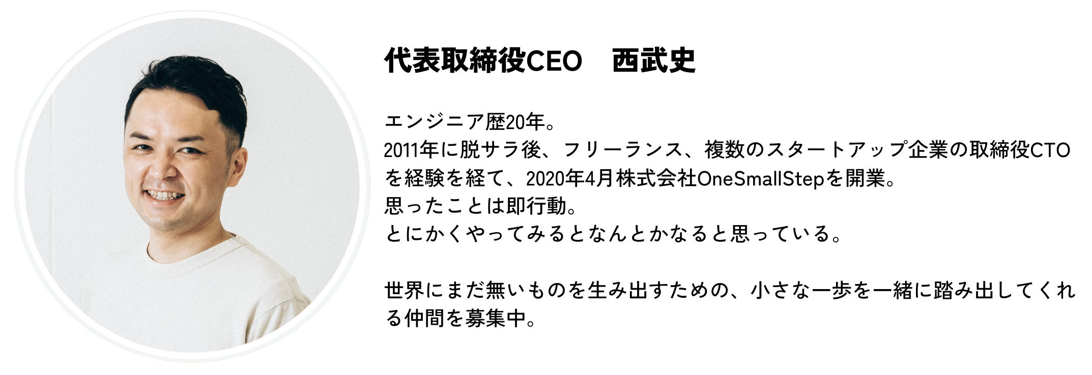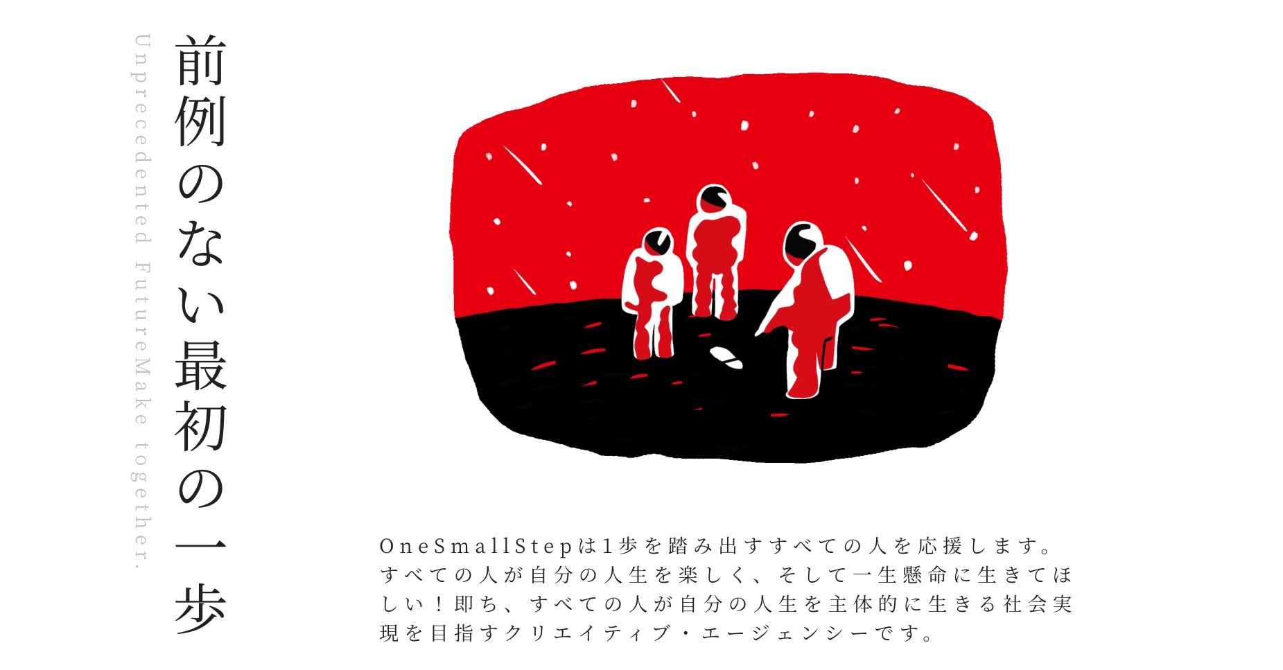株式会社OneSmallStepは世界にまだない一歩目を踏み出し、行動とアウトプットで足跡を残す。一歩目を踏み出すすべての人に寄り添う企業です。