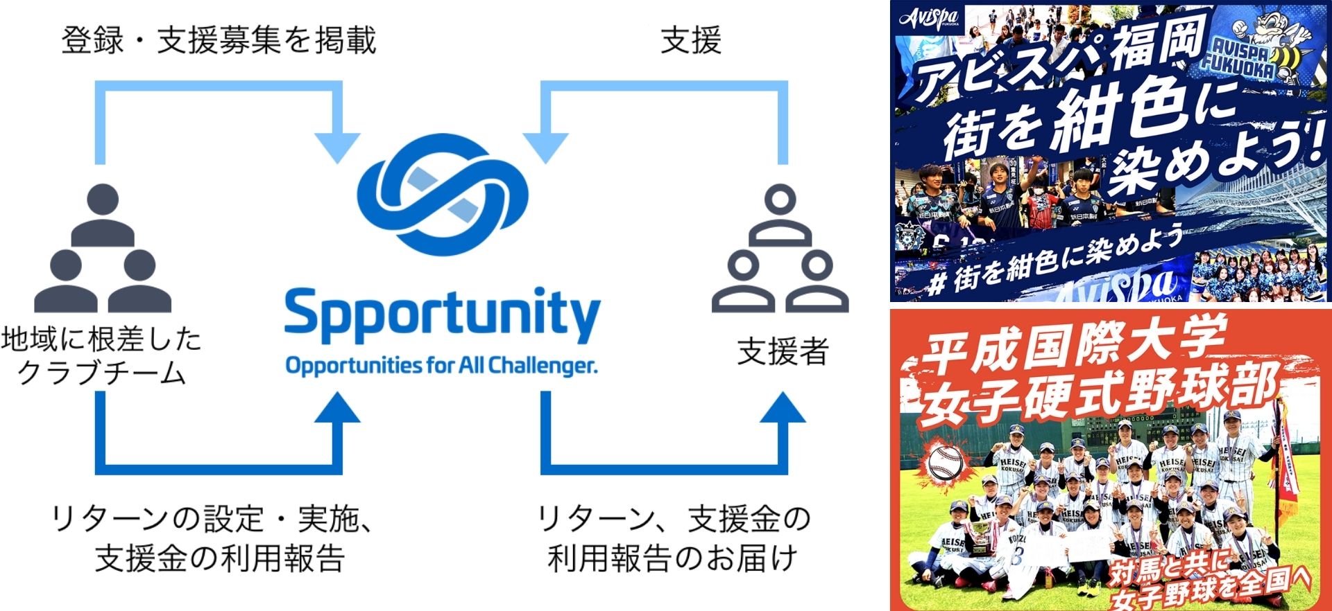 スポチュニティは、クラブチーム・アスリート・スポーツ関係団体・スタジアムやアリーナ・スポーツメーカー等企業・スポンサー企業などの支援を目的とした「スポーツ特化型のクラウドファンディングサービス」です。