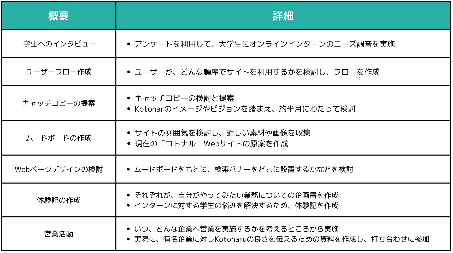 インターンを通して多くの学生や企業と関われました。常にkotonaruを使ってくれる人のことを考えながら業務に取り組んだので自然と「相手の視点で考えること」の大切さを学びました。