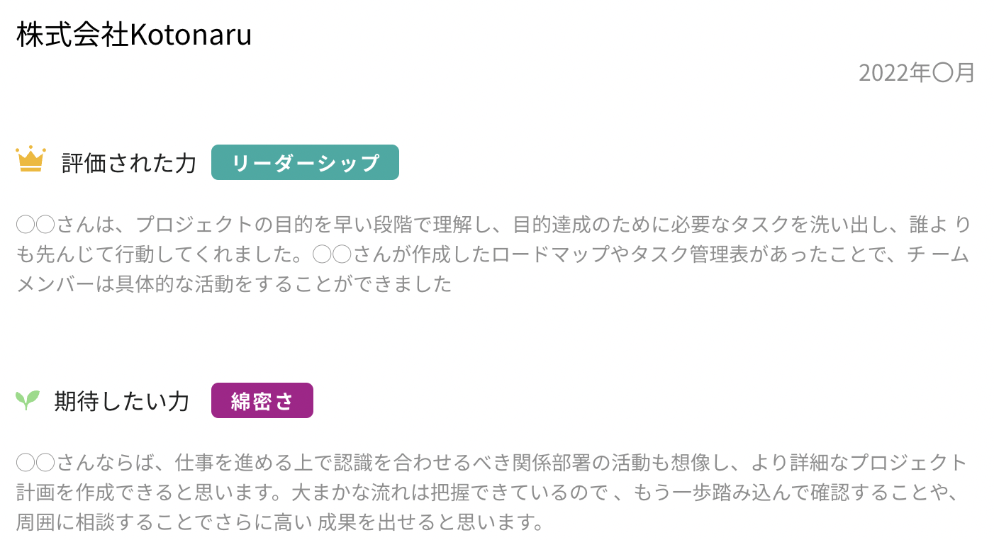 KP8の8項目だけでなく、あなたの業務姿勢・成果など、それぞれのチャレンジに対するコメントも届きます。自分の努力を一番近くでみている人たちからのコメントですので、何かしらの気付きを得たり、自分では言語化できていなかった能力を知るきっかけになるかもしれません。
