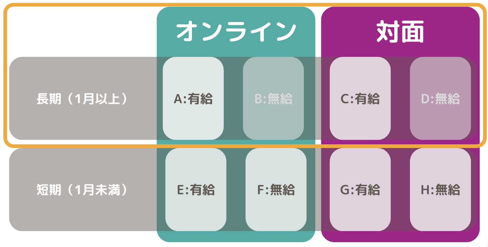 「インターン」とは「インターンシップ」の略で、学生が実際の仕事を体験するいわゆる「就業体験」のことです。「インターン」にもいろいろな種類がでてきてますが、一般的に実施期間が1ヶ月以上のものを「長期インターン」と呼びます。