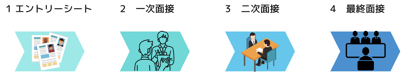 - 面談:(書類審査を通過したら)一般的には3回程度ある面談に臨み、志望動機、ガクチカについて話す。