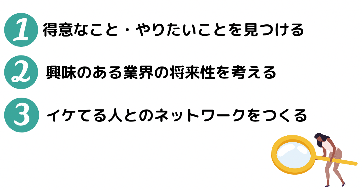 「得意なこと」や「やりたいこと」が見つかったら、それを実現できる業界を探しましょう。例えば「自分は人と話すことが得意だし、毎日でもいろいろな人に会って成長したい!」と思ったとしても、それを実現できる業界はたくさんあります。そして、業界を探すだけでなく、その業界の将来性も見てみましょう。普段馴染みのない業界でも、将来性がめちゃくちゃ高いこともあります。