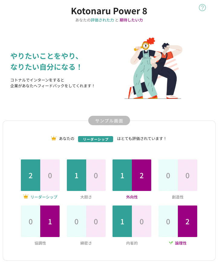 ぜひ完全オンラインの長期インターンシップ検索サイト、コトナルも一度覗いてみてください。日本の未来を創る企業が、集まっています。また、毎月企業からはアナタだけに向けたフィードバックが届くので、その結果をつかって自己分析することもできます。